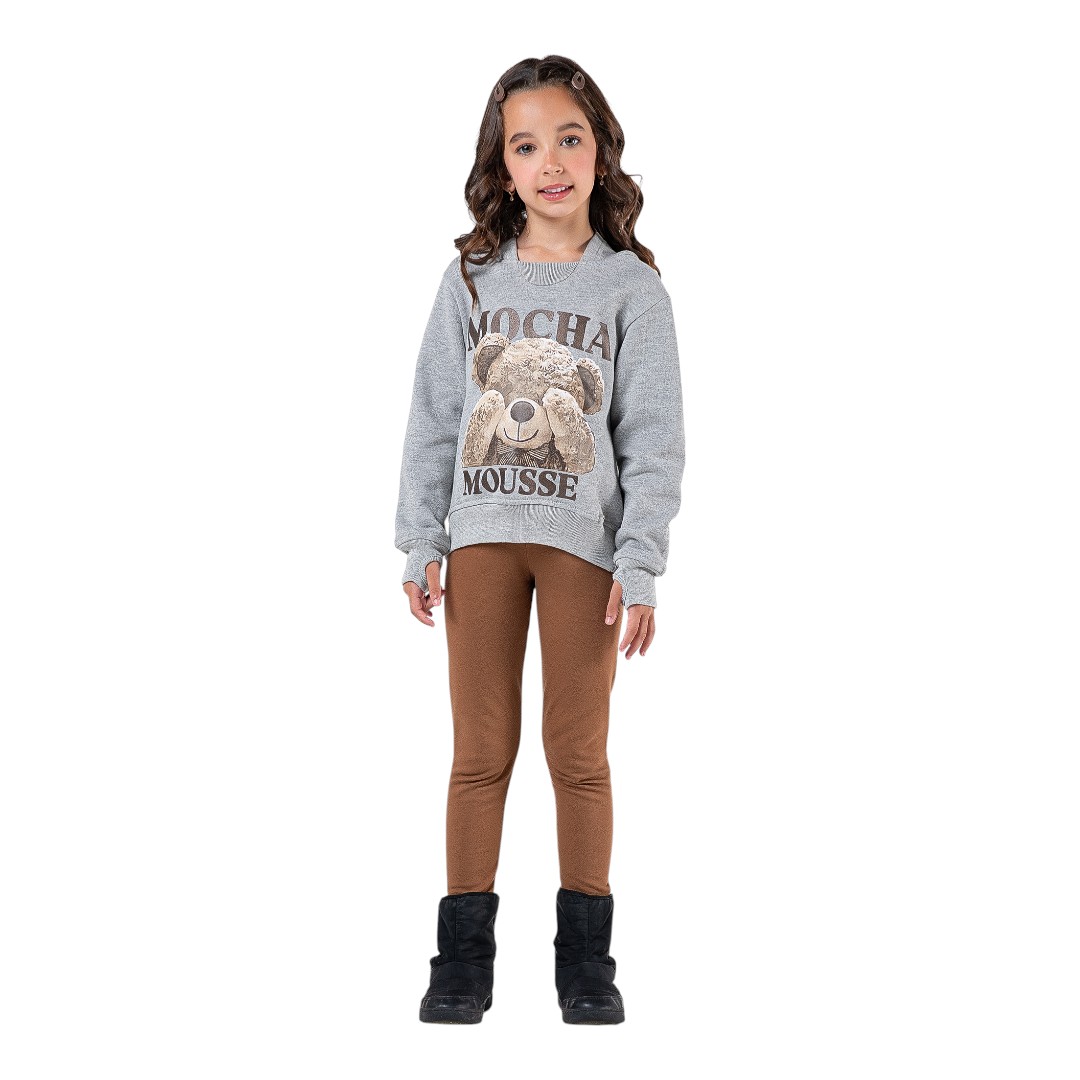 CONJUNTO MENINA BLUSA COTTON STRASS SAIA MOLETINHO 4077