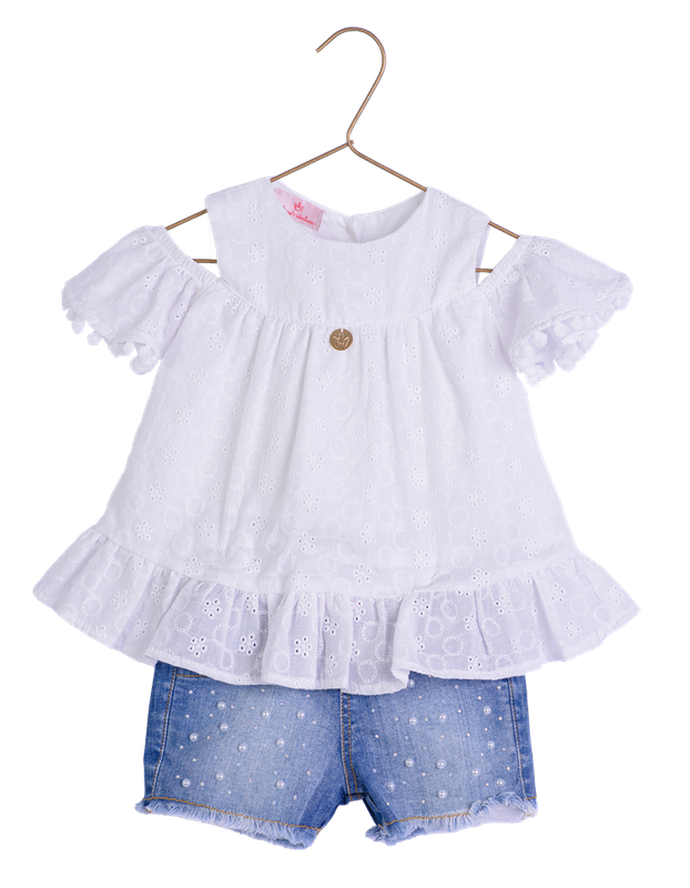 CONJUNTO MENINA REGATA SHORTS JEANS LEVE 3050