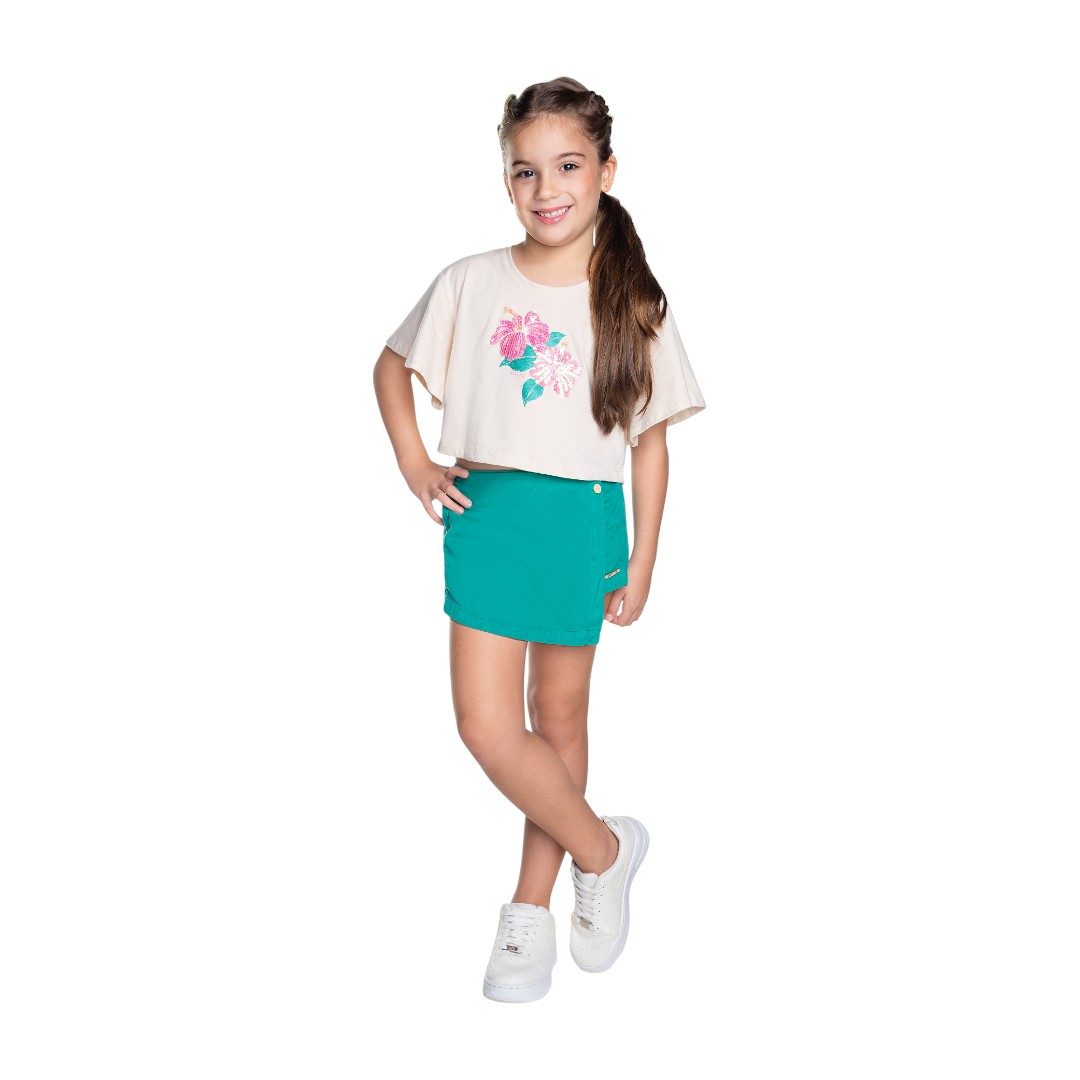 CONJUNTO MENINA BLUSA CROPPED SHORT MOLETINHO 4093