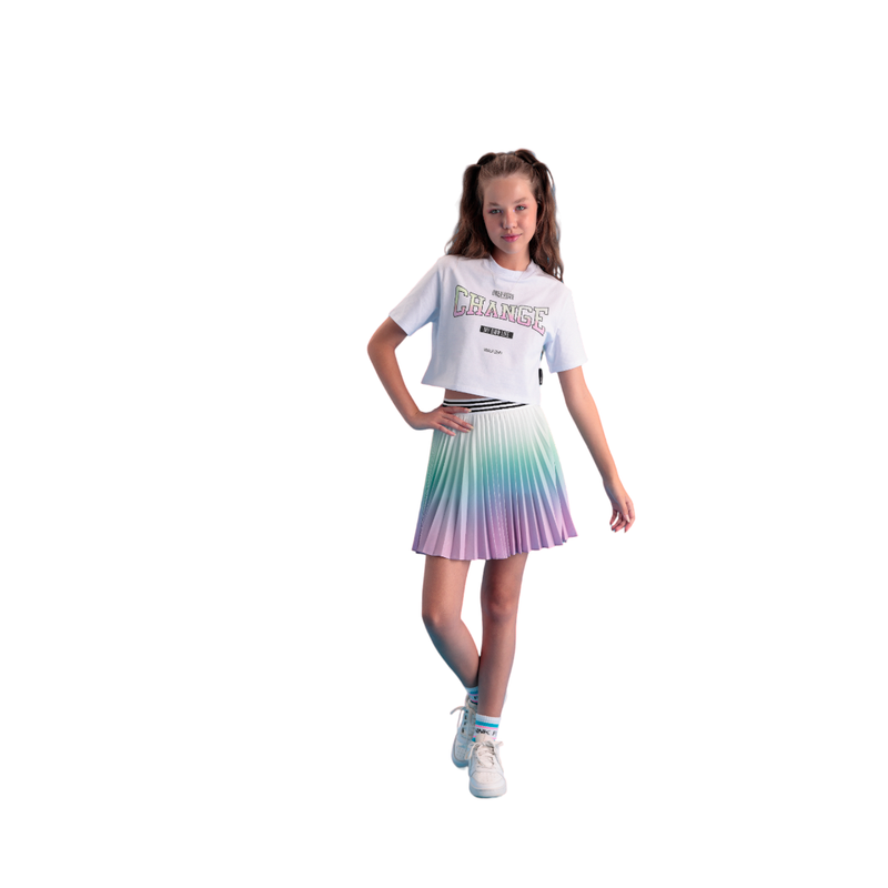 Desde 2011, quando lançamos a primeira coleção da nossa marca ao público teen, buscamos aprimorar, modernizar e acompanhar as principais tendências de moda e design._br_ Trazemos, a cada coleção, o equilíbrio para satisfazer às exigências de quem está sempre começando um novo curso, viajando para novos lugares, conhecendo uma nova música, vivendo momentos inesquecíveis._br_ A mudança é a única constante, assim como nosso público, que está sempre mudando._br_ De opinião, de estilo, de ideia._br_ Mesmo assim, já sabem bem o que não querem._br_ Querem estar onde elas estão._br_ Querem usar o que elas usam._br_ Mas também querem ser eles mesmos._br_ Às vezes, querem o colo da mãe._br_ Às vezes, querem os conselhos do pai._br_ Às vezes, se trancar no quarto e não ver ninguém._br_ Vivem rodeados de amigos. Mas também querem individualidade._br_ _br_ TWO IN é Always changing. É como você._br_ Tamanhos Disponíveis – 14 ao 20_br_ ATENÇÃO CONFECÇÃO GRANDE_br_ _br_ Composição Principal: Algodão _br_ _br_ Informações_br_ _br_ Coloque a peça na máquina no modo de lavagem para roupas delicadas, com detergente e amaciante_br_ Vire do avesso e estenda no varal e na sombra_br_ Se precisar usar a secadora, deixe na temperatura mínima possível._br_ _br_